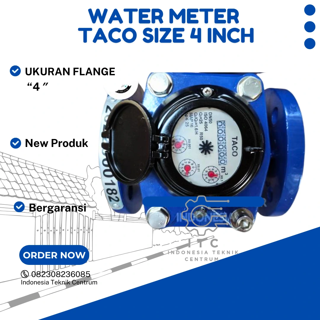 Salah satu merk terkemuka dalam kategori ini adalah Taco, yang dikenal dengan produk water meter berkualitas tinggi. Taco menyediakan beragam model untuk memenuhi kebutuhan yang bervariasi, dengan ukuran 4 inch menjadi salah satu pilihan yang sangat populer. Ukuran ini sering digunakan dalam aplikasi yang memerlukan aliran air dalam volume besar, seperti di gedung-gedung komersial, pabrik, dan infrastruktur publik. Water meter Taco ukuran 4 inch menawarkan sentuhan inovatif dalam desain dan teknologinya, sehingga memberikan akurasi tinggi dalam pengukuran serta efisiensi dalam penggunaan air.